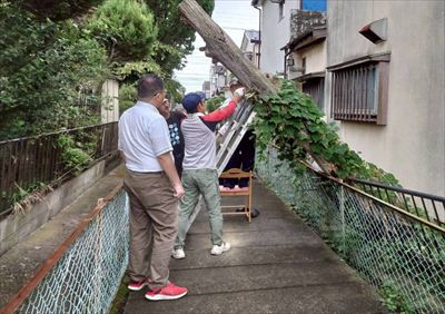 ⑤空家の敷地内の枯れ木が倒れて危険だったので、皆さんで協力して切り倒しました |