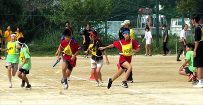 ⑤花形種目町会対抗リレーのバトンタッチ |