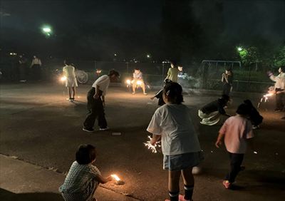 ⑤親子約40人が集まり花火を楽しんだ。 |
