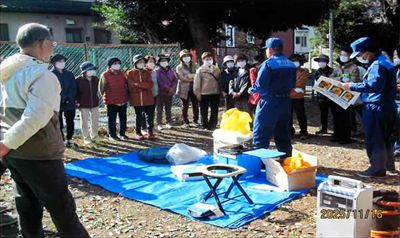 ⑤11月23日に実施した四地区合同防災訓練で、私達の自治会は「災害時に役立つロープワーク」と題して、幾つかの結び方を体験しながら習得していただきました。これは普段でも役立つなぁ、と好評でした。 |