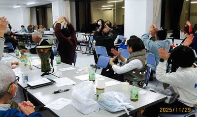 ①メロディー体操です。元気にgo-go(自治会親睦会)