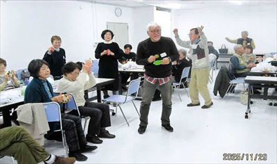 ①サンバのリズムで踊り出しました。(自治会親睦会)