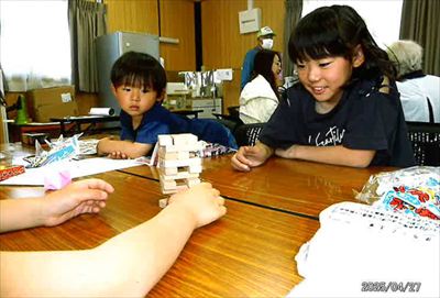 ⑤三世代交流夏の集いで懐かしい紙芝居を見ているところ |