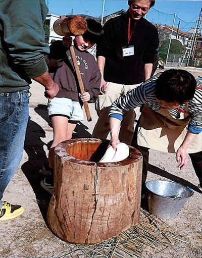 ⑤樽転がし競争:6人で楽しく競技をしました。結果は2位。バンザイ!! |