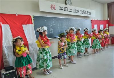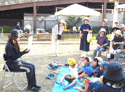 ⑤三世代交流夏の集いで懐かしい紙芝居を見ているところ |